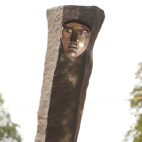 Bronze/ Marmor – Basaltstele 2003 178 cm